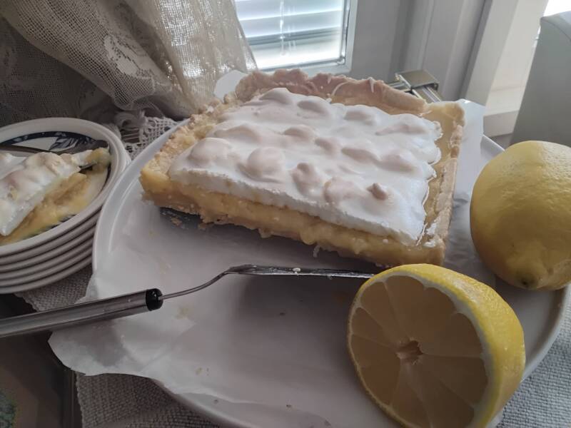 Viikonlopun makeana leivonnaisena on sitruuna-marenkitorttua.