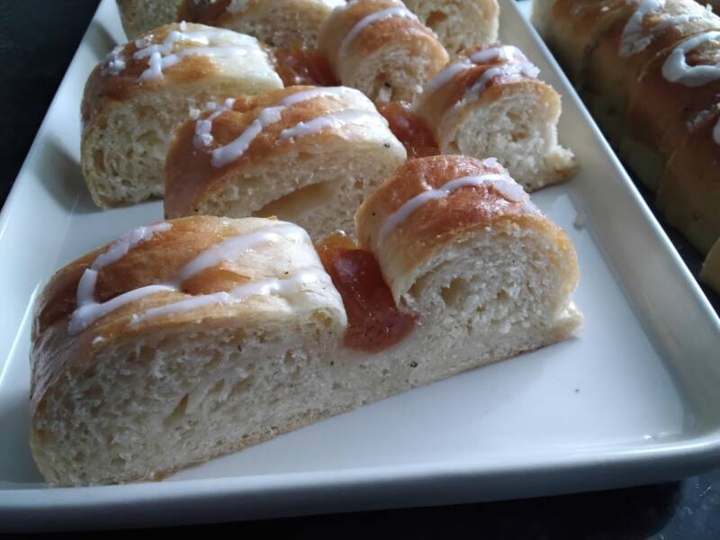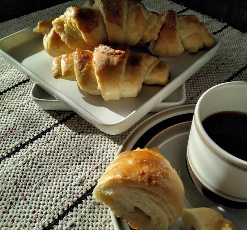 Tämä oli kahvihetki seuranaan tuoreet croissanttyyppiset omena-sarvet, joihin lisämakua antoi vaniljakreemi.