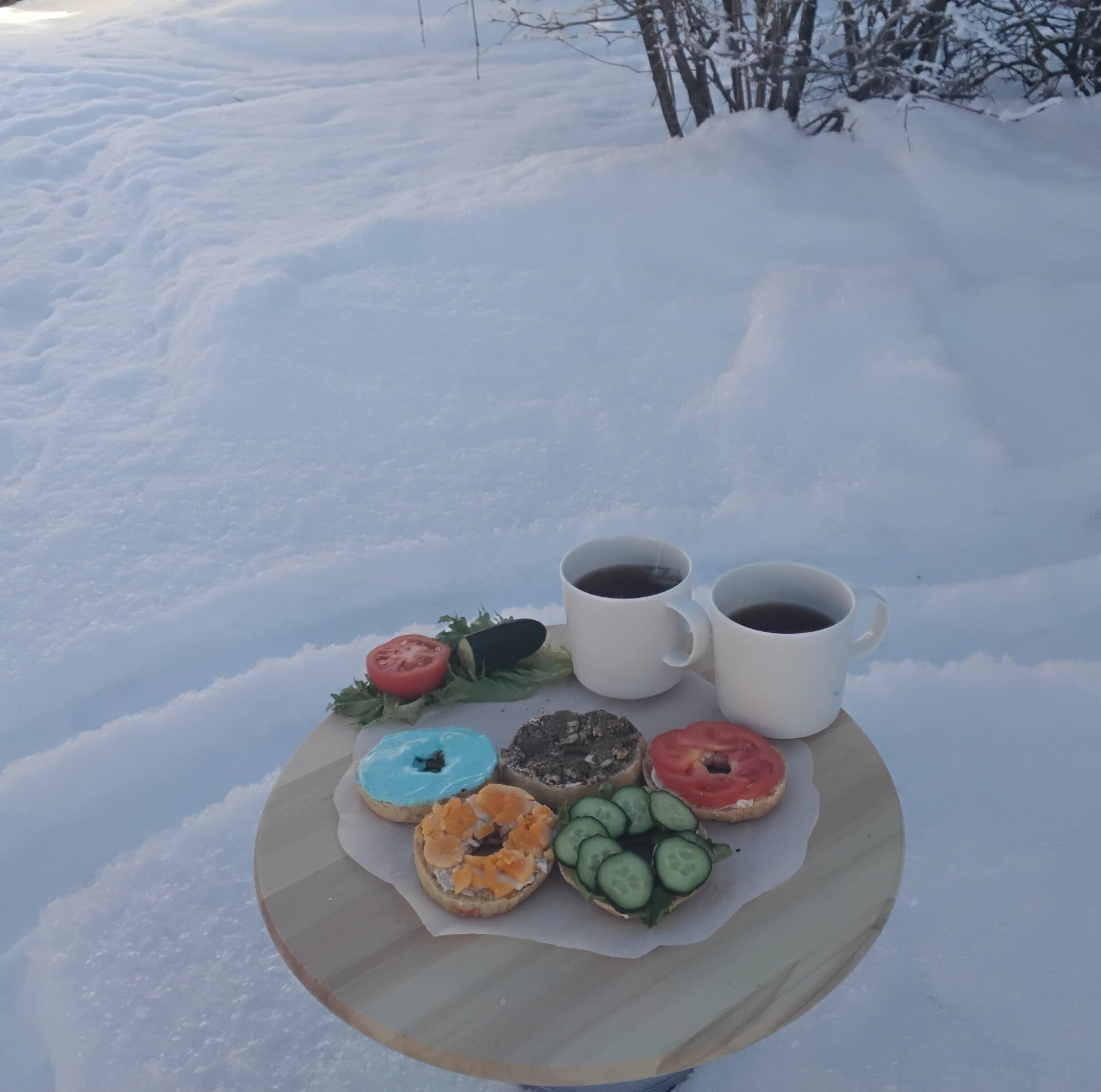 Siitä ne syntyivät kisarenkaat ja pitihän ne saada kuvattua ladun vieressä.