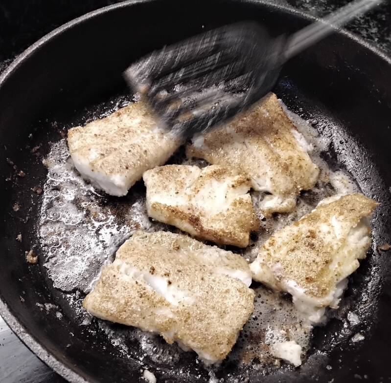 Ja nosta kypsät kalapalat pannulta, ja nautiskele sellaisenaan, voileivän päällä, tai vaikkapa perunamuusin kera.