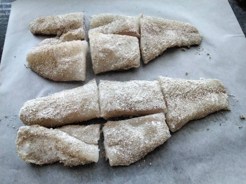 Leikkaa filteet halutun kokoisiksi paloiksi joko vasta tässä vaiheessa tai jo heti ennen suolausta tai jauhotusta.