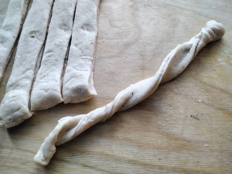 Kiepsauta nauhat kierteelle ja pyöräytä ne pöytää vasten kierrepullaksi.