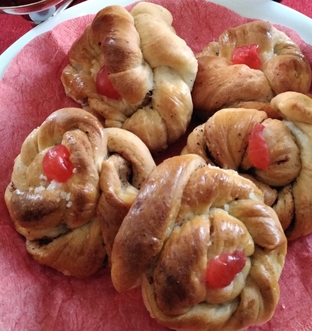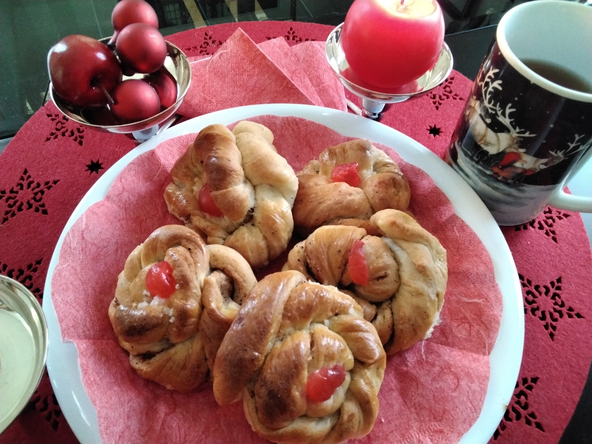 Joulun kunnioaksi voit laittaa päälle vielä kirsikan puolikkaan, kuten kuvan pullissa.