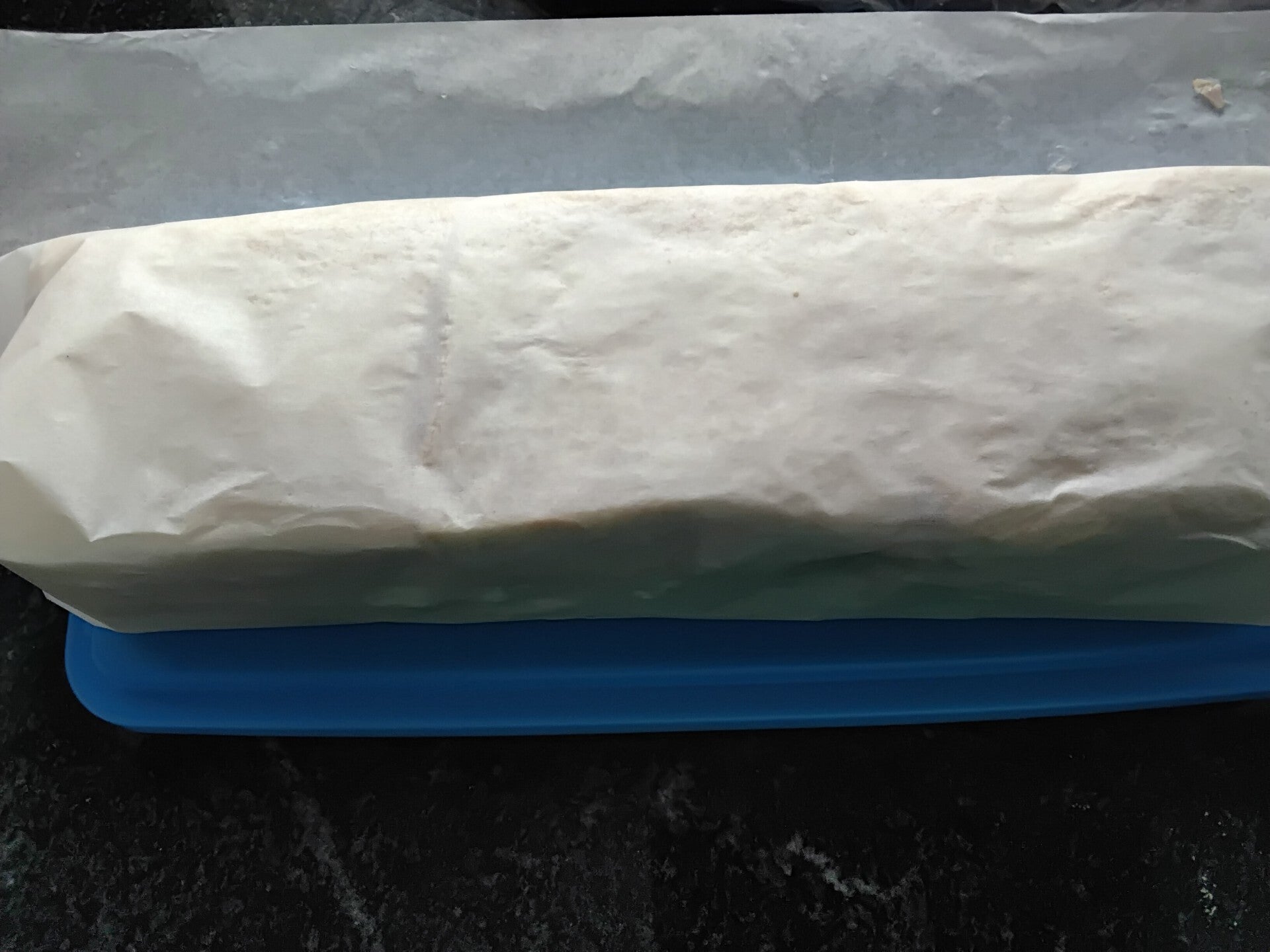Käärin kakun voipaperiin ja laitoin tekeytymään jääkaappiin pariksi tunniksi.