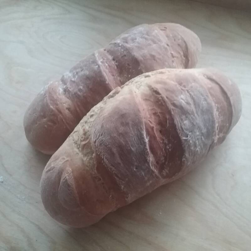Leivo taikinasta kaksi pitkulaista leipää.