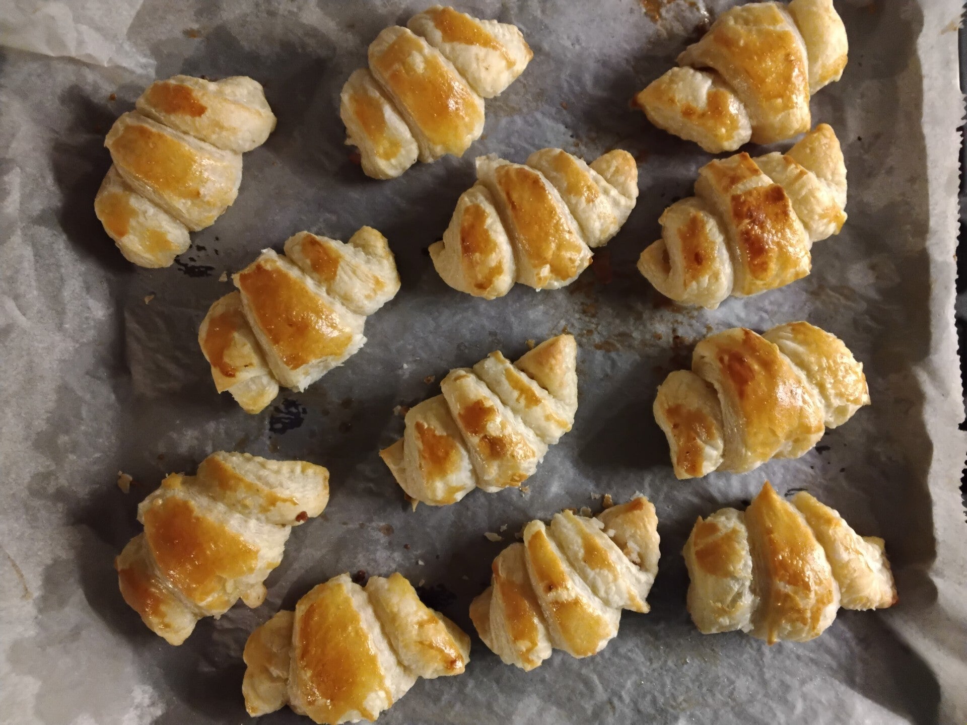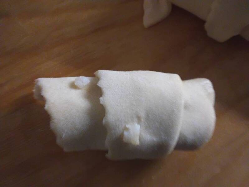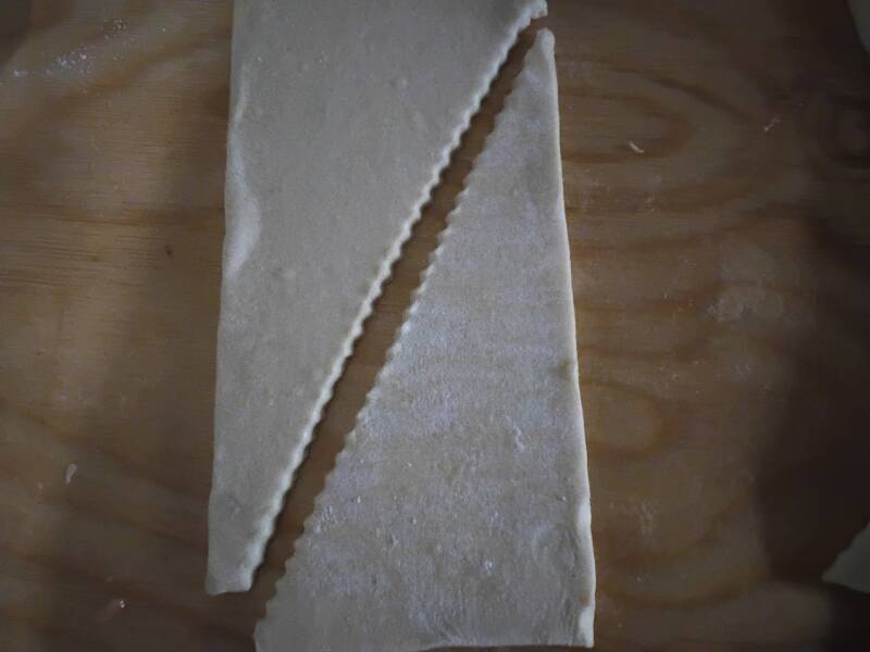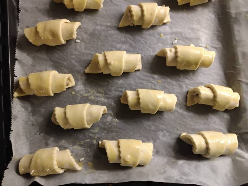 Levyt rullattu sarviksi. Voidetu kananmunalla.