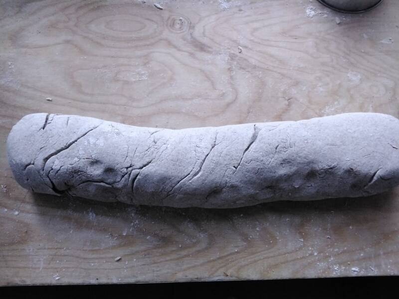 Leivät jäivät nouseman leivinpöydälle leivinliinan alle peitettynä tunniksi, jonka aikana niiden pinta repeili, kuten ruisleivän pinnan kuuluu tehdäkin.