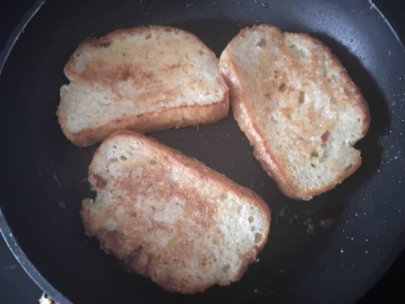 Kuumensin pannun ja paahdoin leipäpalat molemmin puolin pannulla.